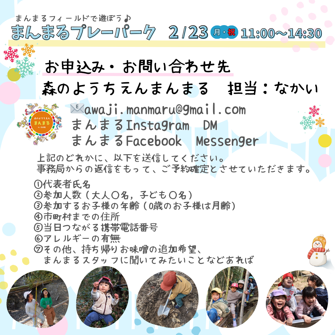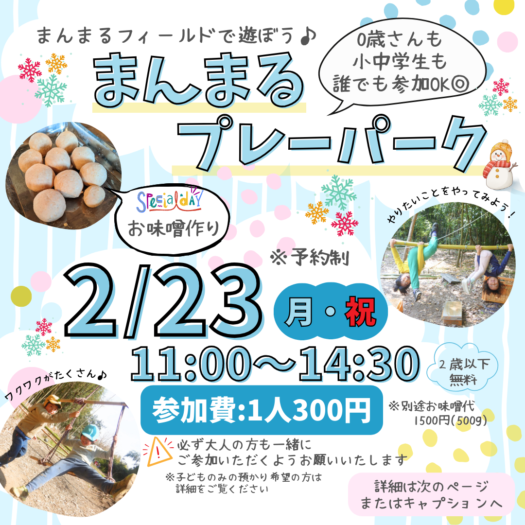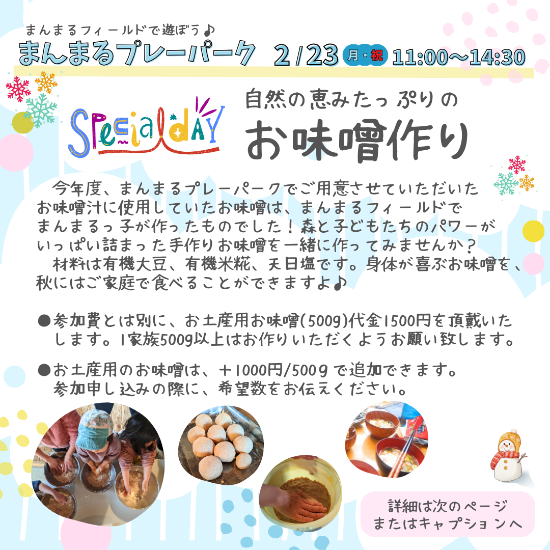 [申込み受付中]2/23(月・祝)まんまるプレーパーク&お味噌作り : 森のようちえん まんまる