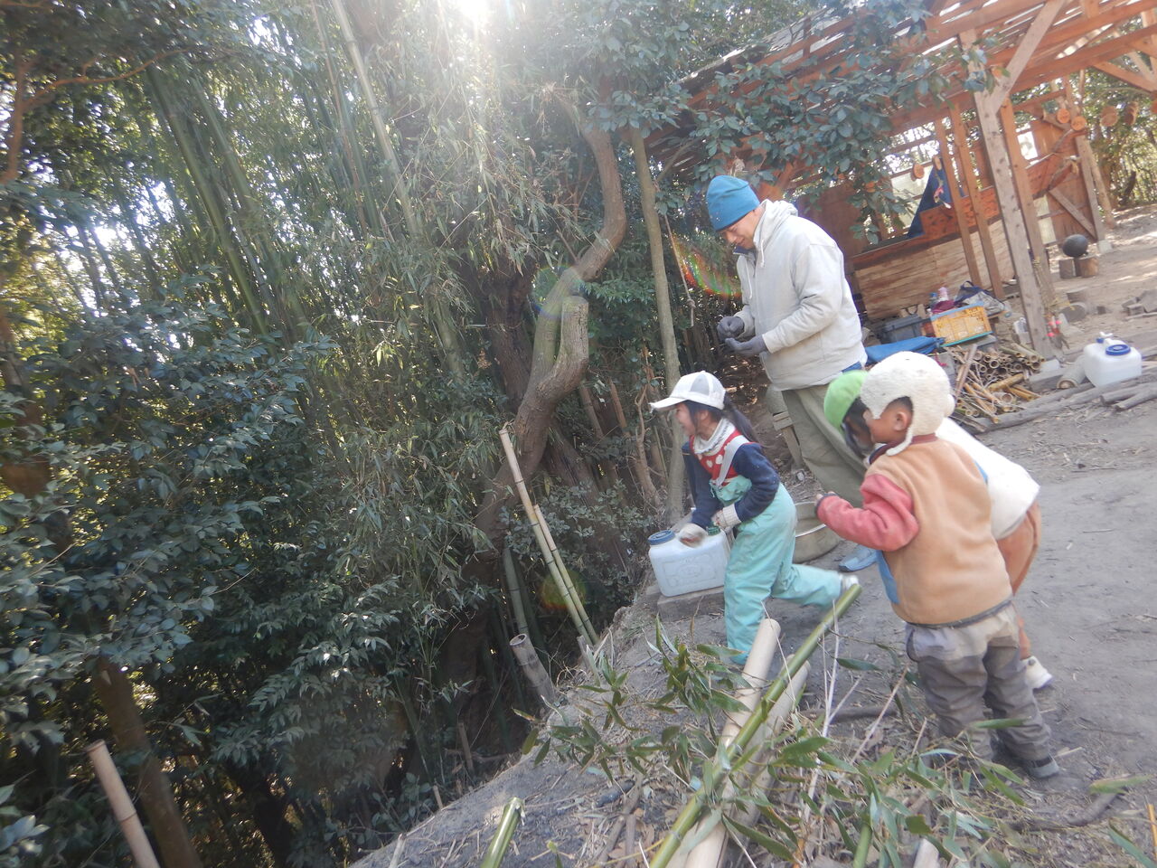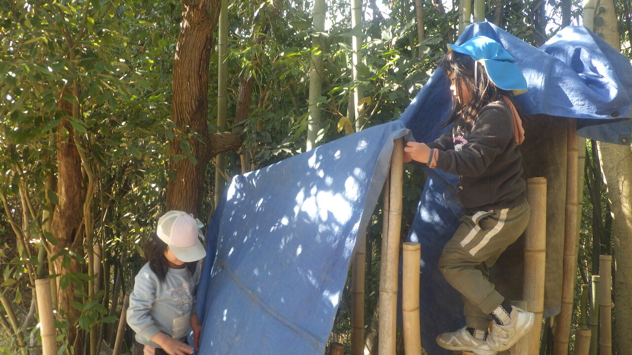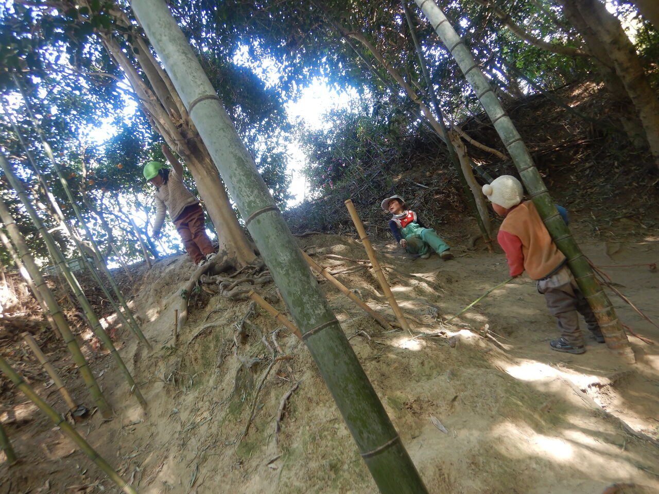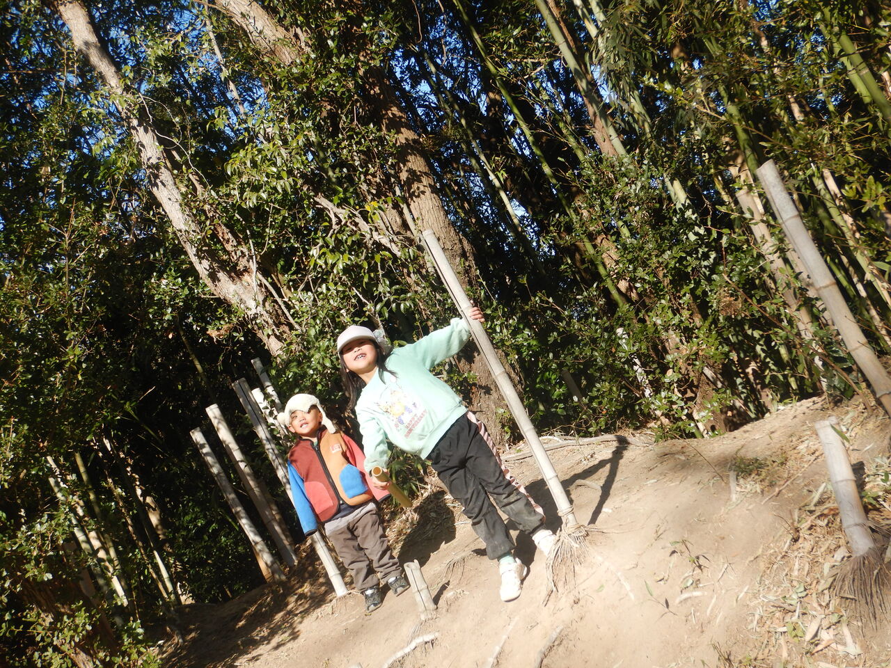 しばらくすると、竹の使い方のコツをつかんで、2人はそれぞれに楽しそうでした。