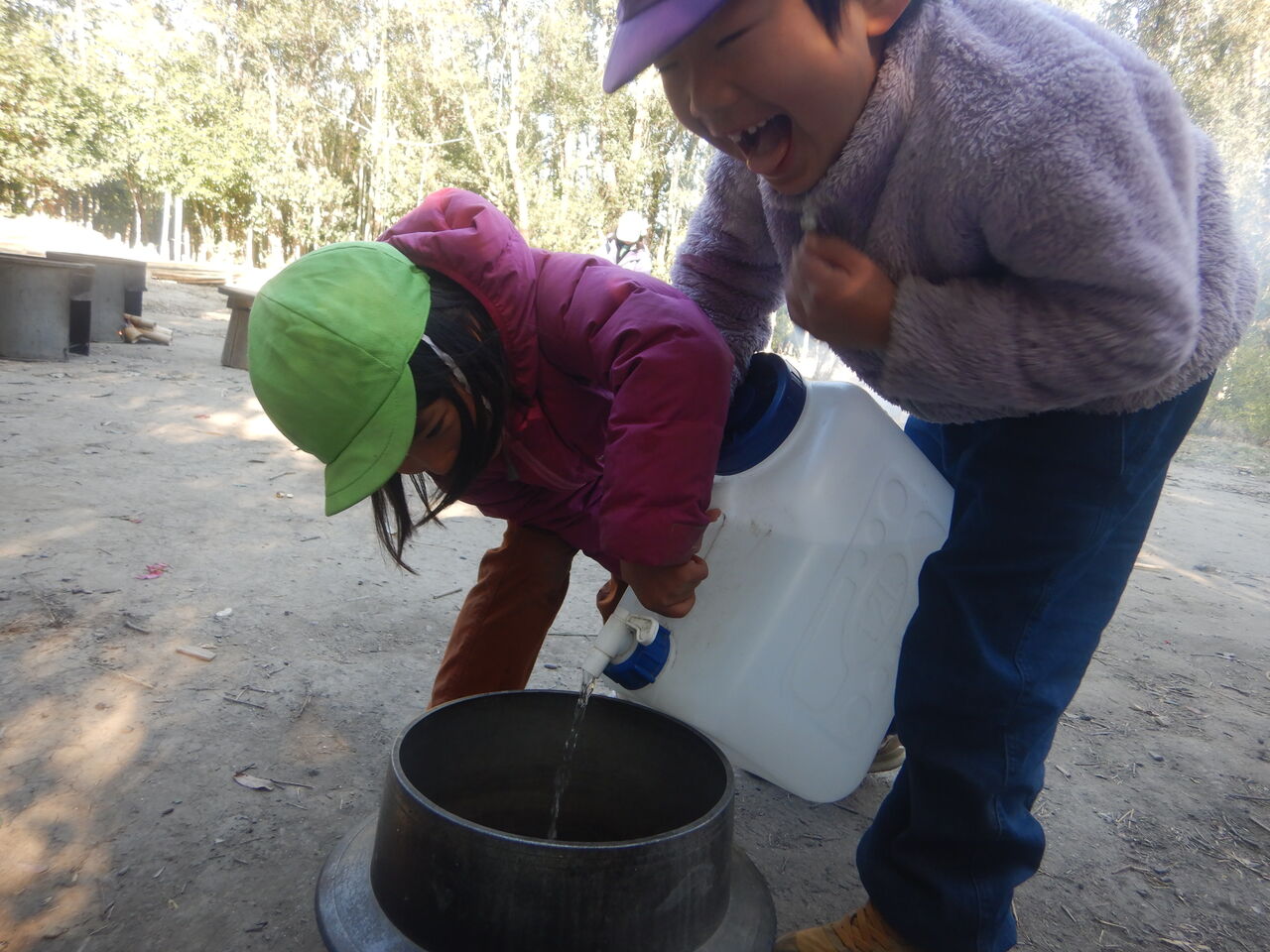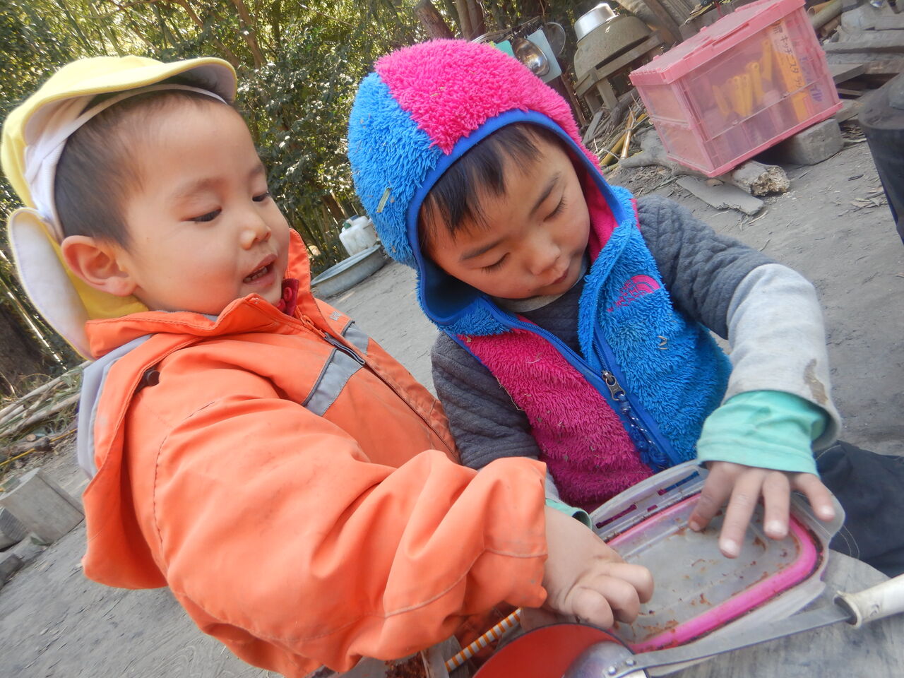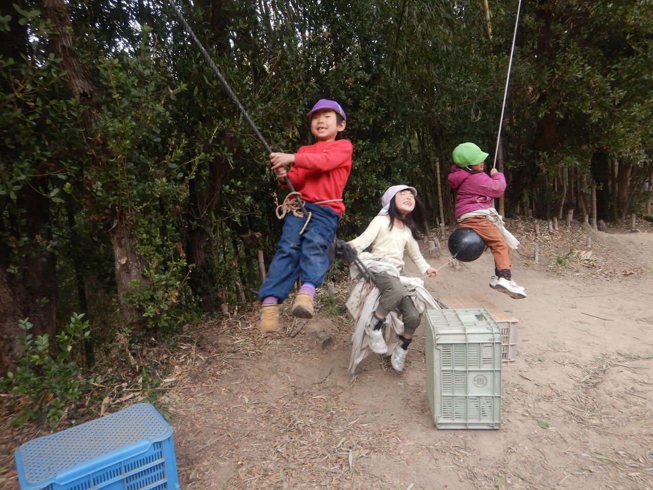 しばらくすると、竹の使い方のコツをつかんで、2人はそれぞれに楽しそうでした。