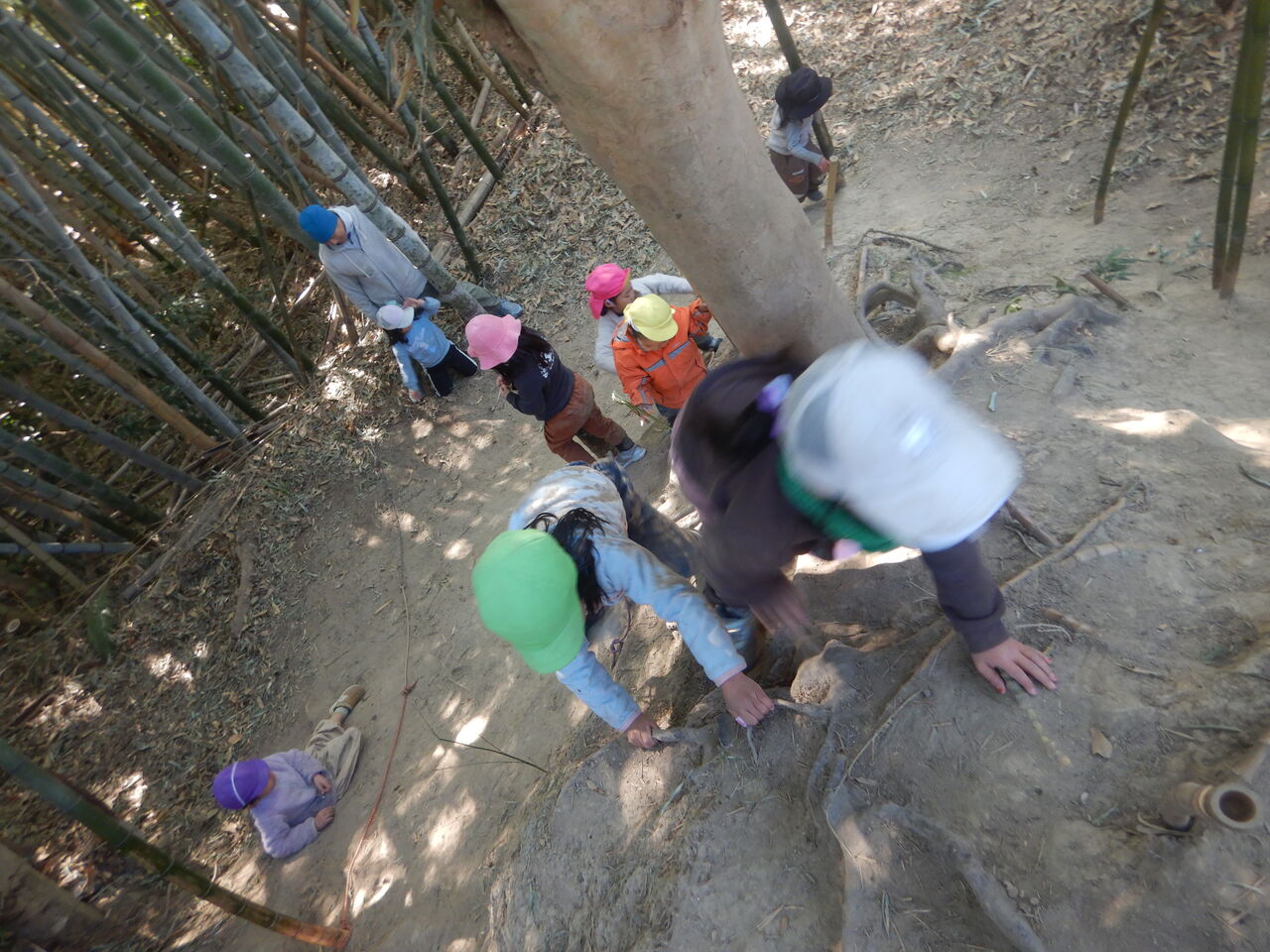 一緒に遊んでいたき~ちゃんは、急いで同じような竹を探す。