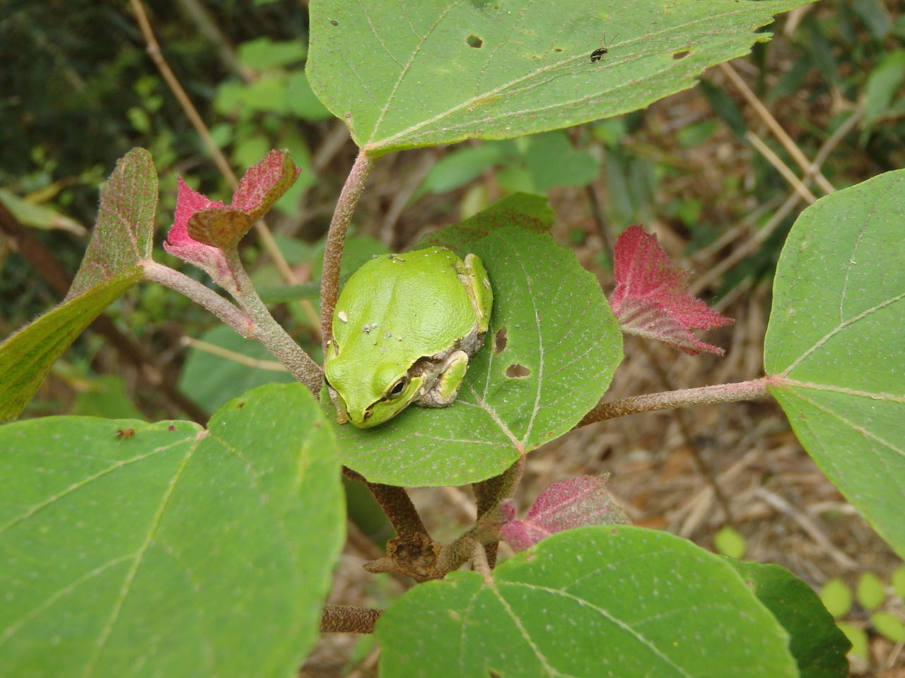 きれいな緑色のカエルや、おんぶしている緑のカエルも発見!