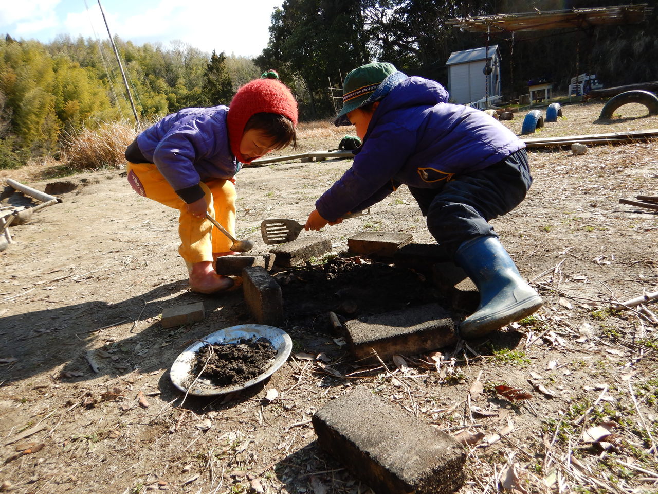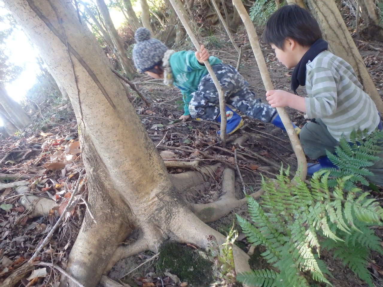 穴を掘って、イノシシパウダー(とまんまるっ子が命名した土)を採っていたら、
