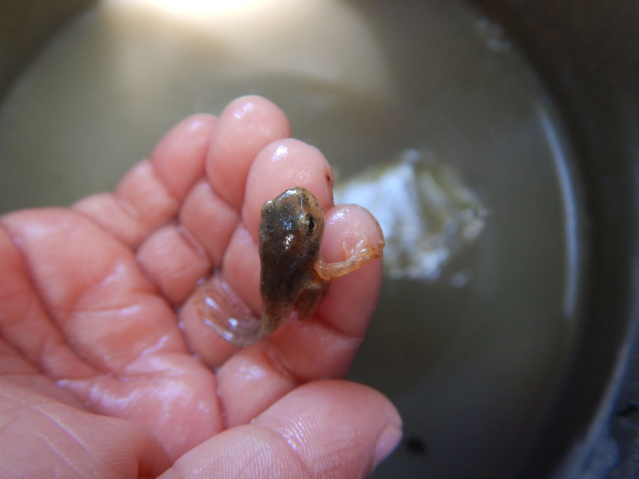 今度はビニールの下が、地面とこすれてちょっと穴が開いたみたい。