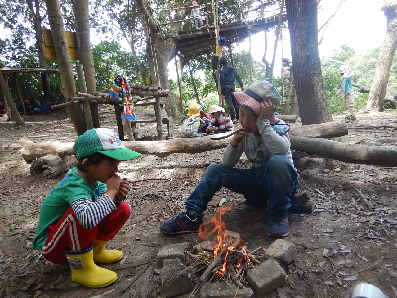 最初は、巨大蚊取り線香としての焚き火をしていた。