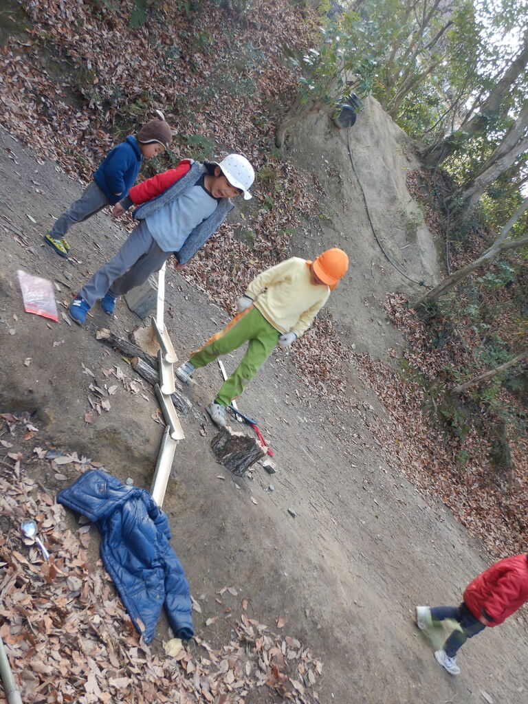 「私も、さっき滑っちゃって、膝がどろんこだから、ズボン着替える!」とついてきた。