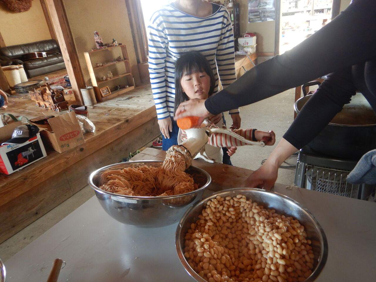 先のとがった枝を、ナイフのように動かして、柔らかい枝の樹皮をはがしている。