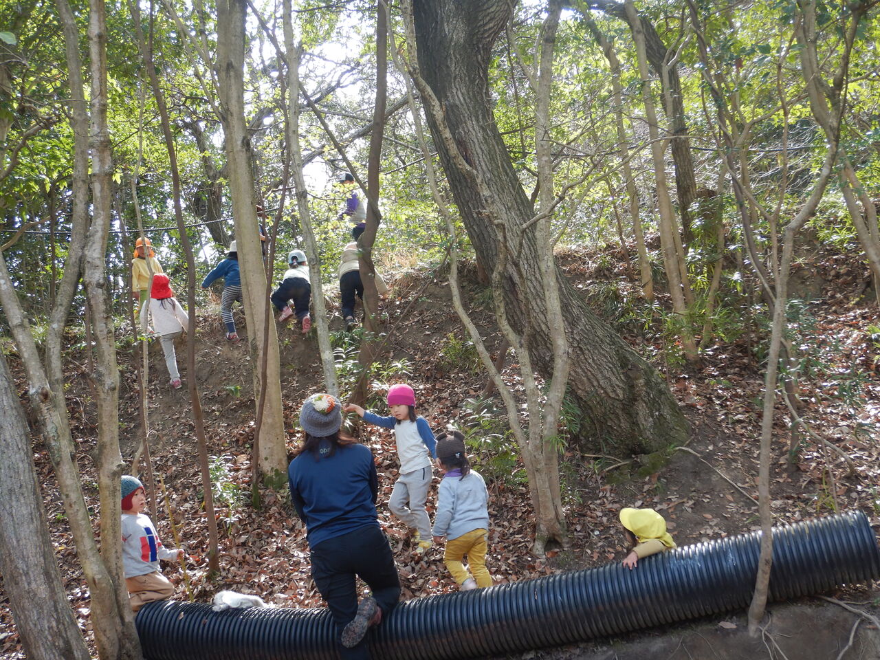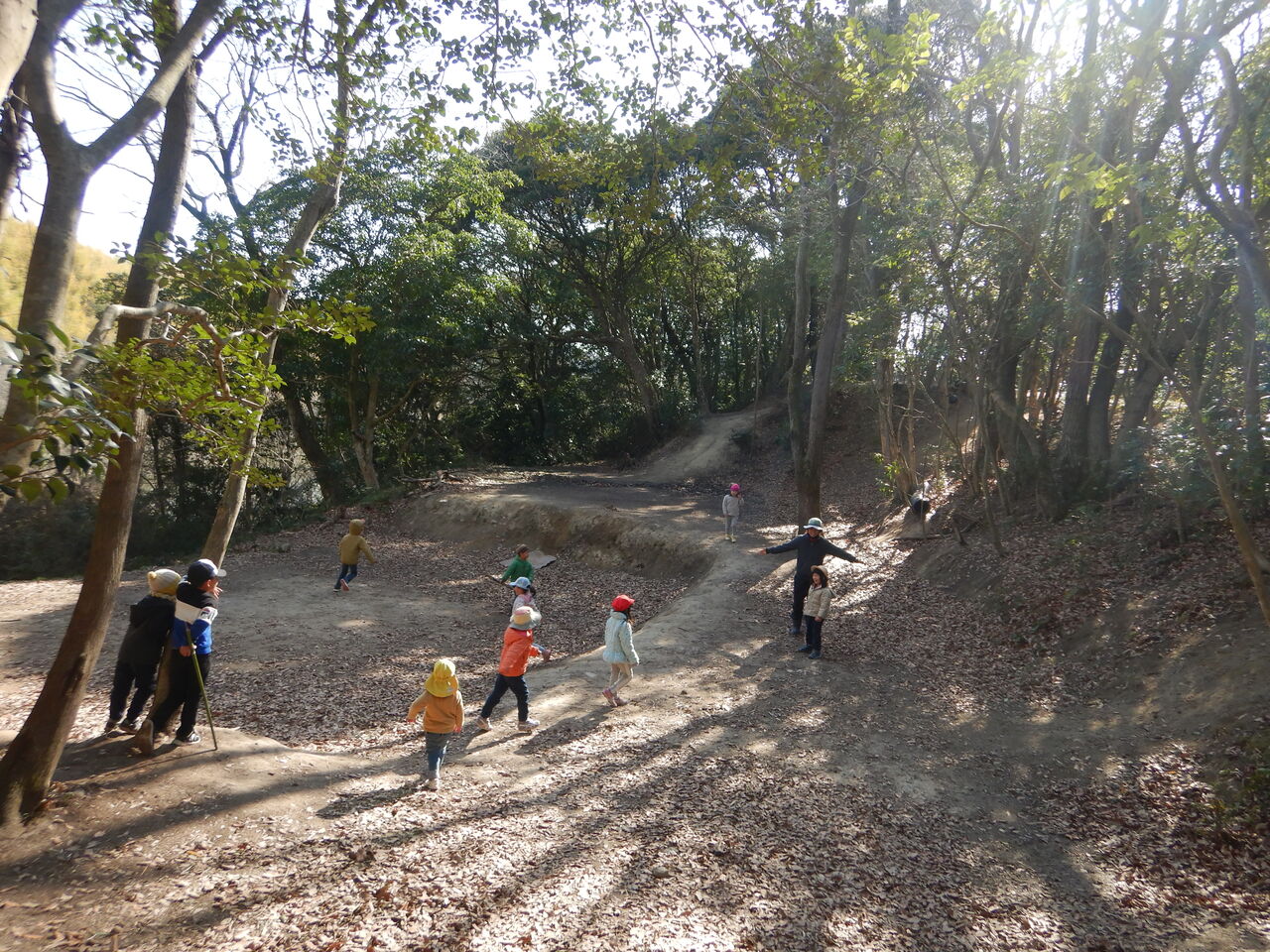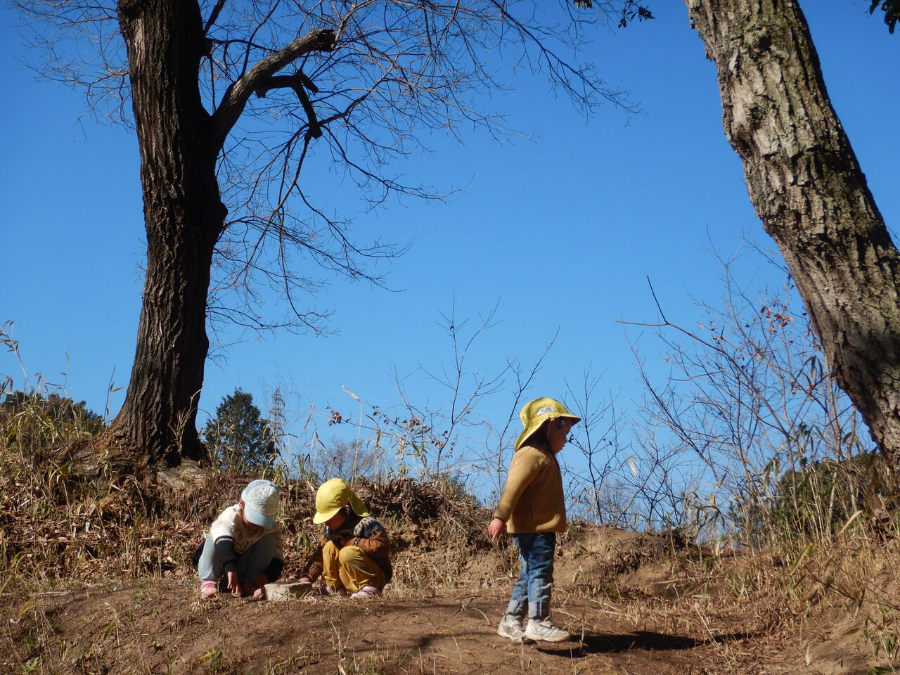 ぽかぽかのお日様の下、ふわふわの落ち葉の上に座り、