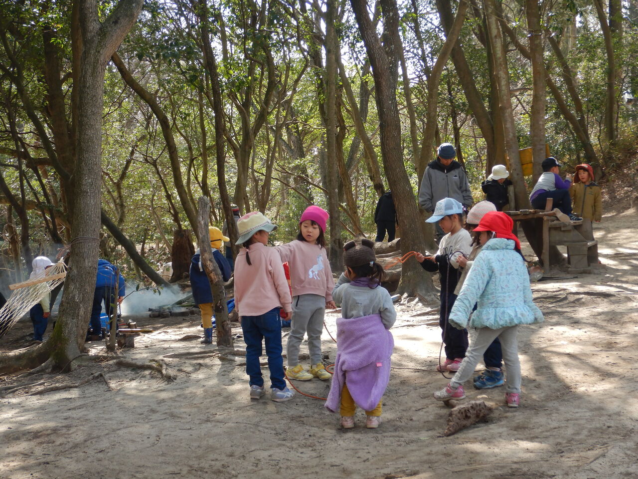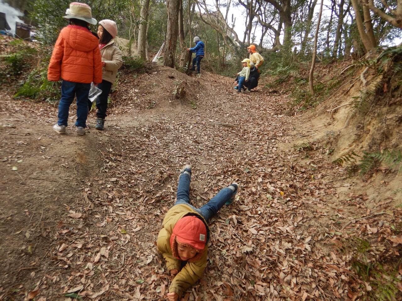 ケイドロの仲間に加わらず、端っこで何やら座り込んでいるらっちゃん。