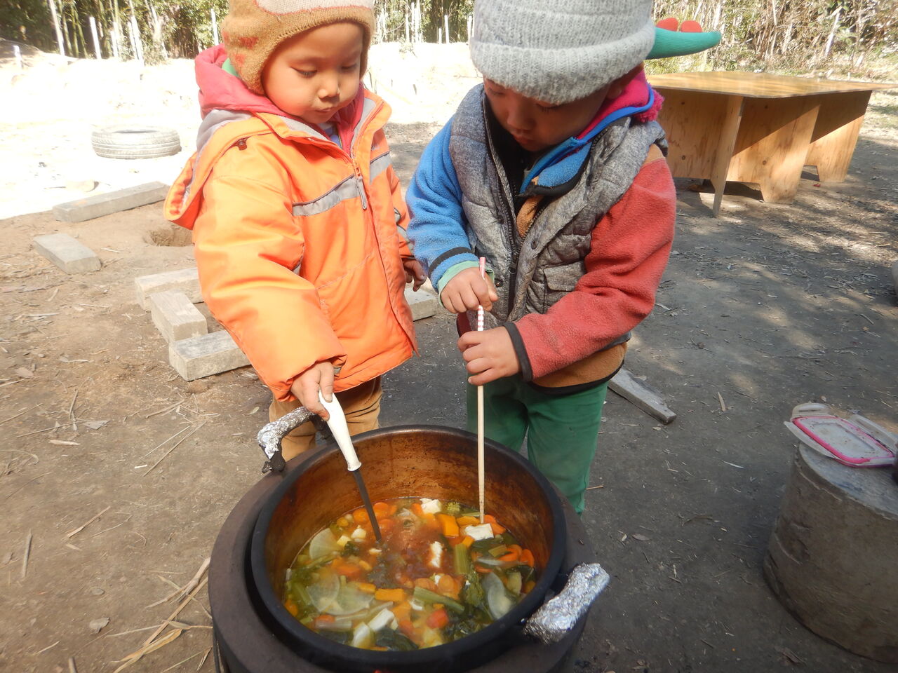 盛大にあふれたりしながらも、豆の煮えるいい香りがフィールドに広がりました。
