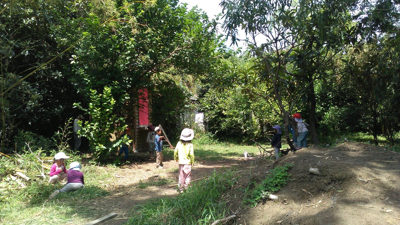 うわさを聞きつけたは~ちゃんも加わって、パンチの穴の画用紙探し。