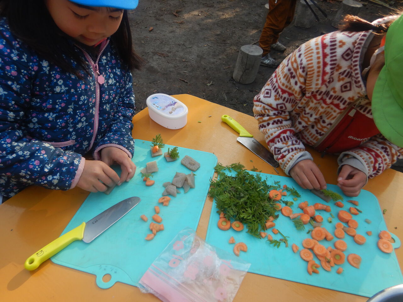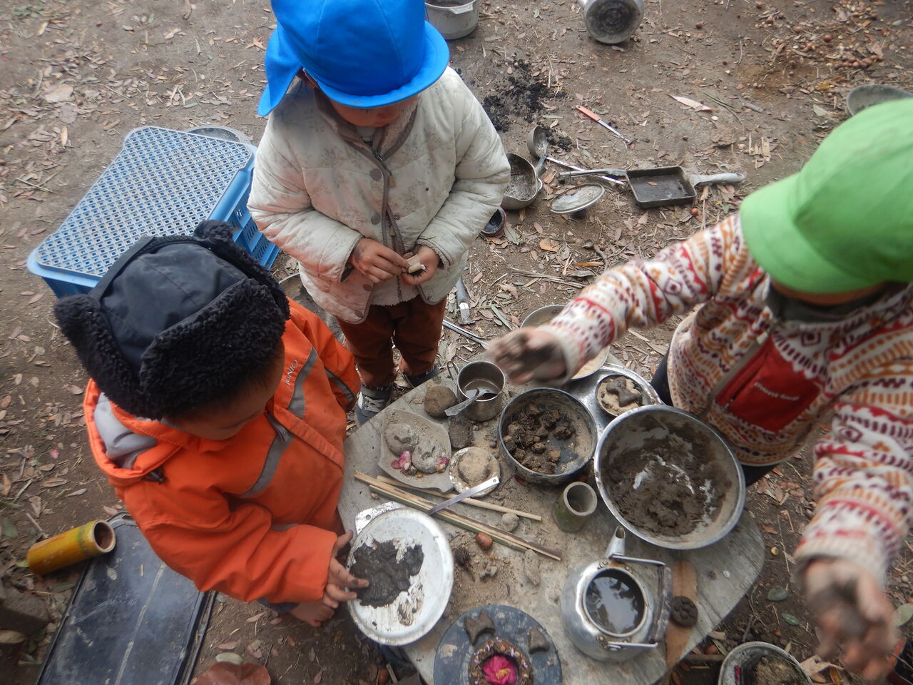 みんなのみかんを積んで「雪だるま~」と遊んでいると