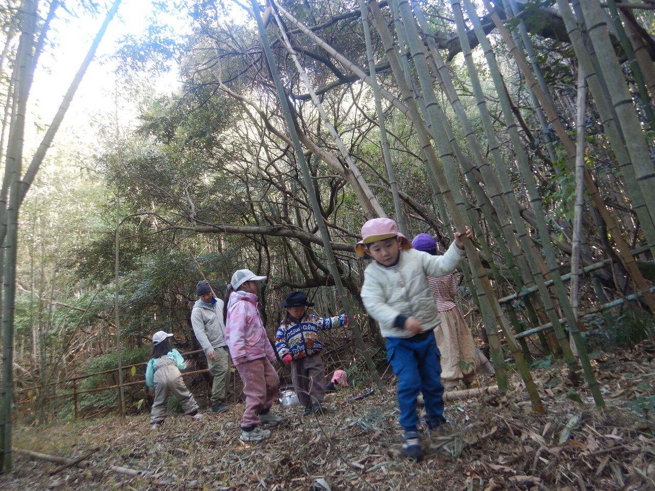 突然の「もう帰ろっか!」のひとことで、みんなで斜面を登りだすのでした。