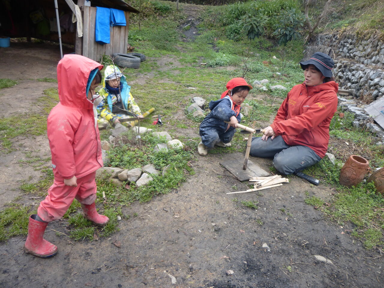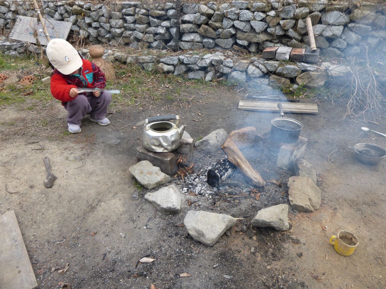 鬼は、鬼決め(片足をだし、歌と同時に指を動かし、歌の終わりと同時に指が止まった人が・・・というやり方)で決めることに。